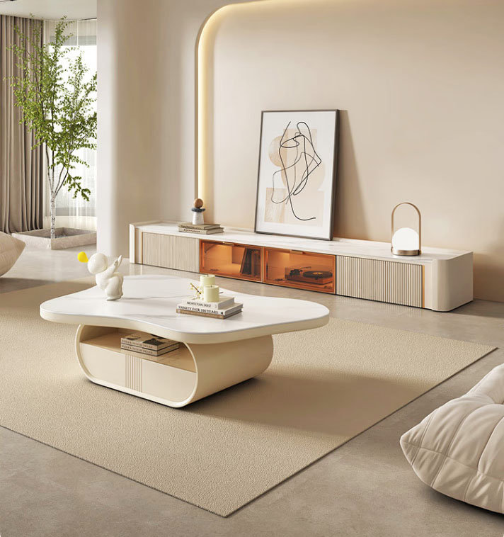 岩板的材质现在也是比较流行的,除了做背景墙之外,也可以做茶几的桌面。