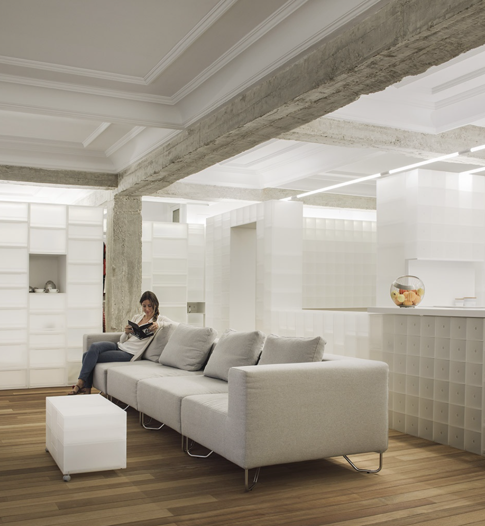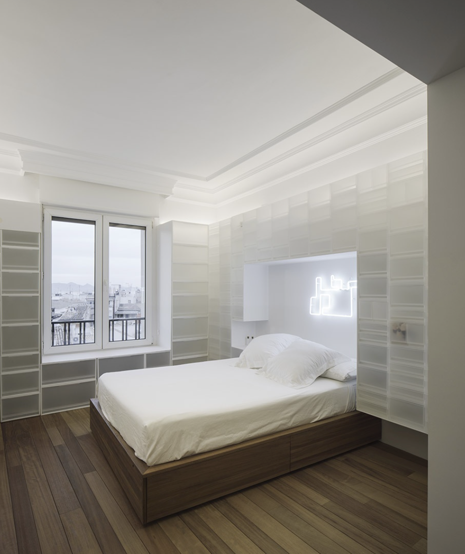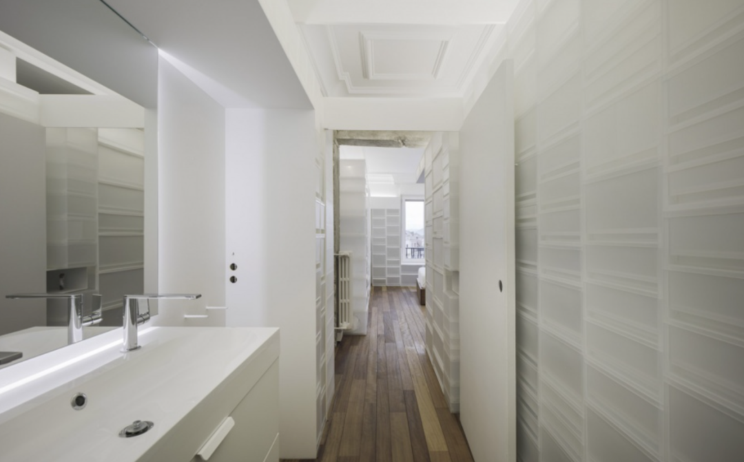 真不错,用半透明盒子代替隔断墙,饰面砖,装饰墙等等。很大胆,而且费用并不高。如果内部还可以储物的话,那就满足了功能与形式的统一。这样的构思真的太棒了,业主的接受度也很高,真好鸭!这种透明盒子 是可以储物的吗?里面要是放了东西 那颜色不又是五颜六色了?