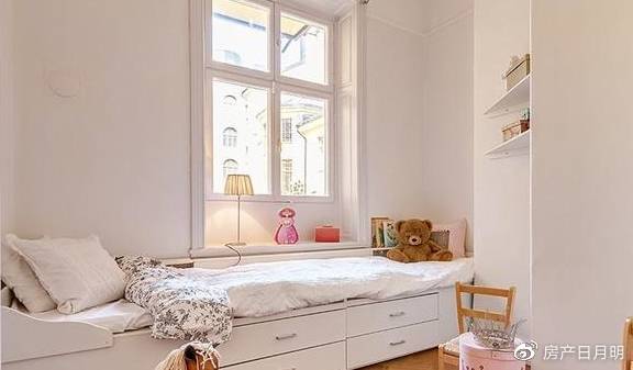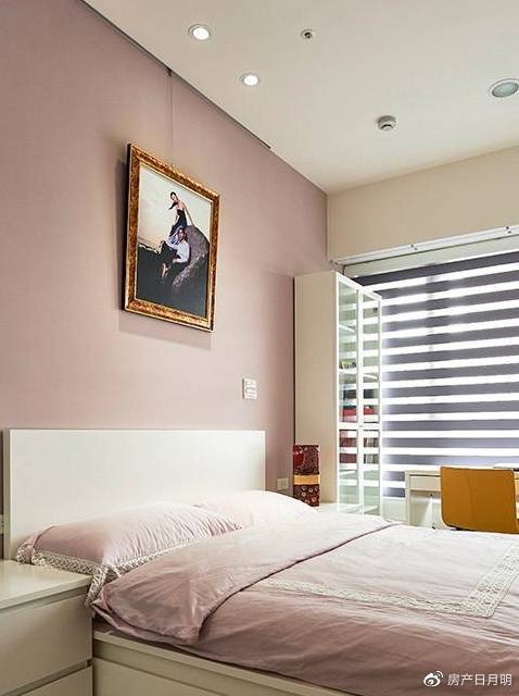 白色家具搭配白色墙壁,是较“保险”的选择,而且也不用担心有一天会“厌烦”。地面最好选择稍微深的颜色,来“压一压”空间,不至于使它“飘起来”;后期搭配时,床品、窗帘选择其它颜色都可以,但我认为选择白色,再加上其它的颜色做点缀空间会“纯粹”一些。这样搭配的卧室我认为可以作为主卧室、长辈房、儿童房使用。