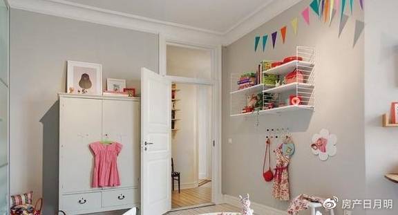 灰色越来越流行,尤其是浅灰色。同样是无彩色的灰色,容纳性也很强,浅灰色用在家中既使采光不好也没关系,灰色墙壁、白色家具、浅色地面,灰色作为较深的颜色,稳固了空间,后期配饰搭配什么颜色都可以,不用有顾虑,把彩色的配饰放进去,干净、稳固,也很温馨的儿童房也就打造而成。
