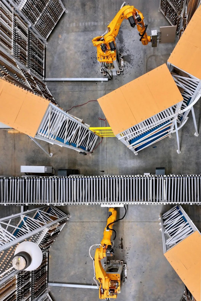 在佛山现代化的工厂里,只能看到很少几个工人,更多的是机械手上下翻动,每只机械手每天可以加工几千件完全不同的产品,误差可小到±0.5毫米。在算法的加持下,一块板材的利用率可以超过90%。