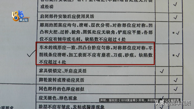 冯先生:它这里都不是正儿八经的木头了,它这个就是腻子跟胶水,下面也是榫卯结构,下面应该有个榫卯结构的,这个上面根本就没有。所以我们后面又查了相关的国家标准,请了懂这个的人,到我们家里来帮我们看。他们意思说这个东西肯定是假冒伪劣的,他不是说你木材有问题,木材可能没问题,但是你这个做工,加工方法上面肯定都是有问题的。