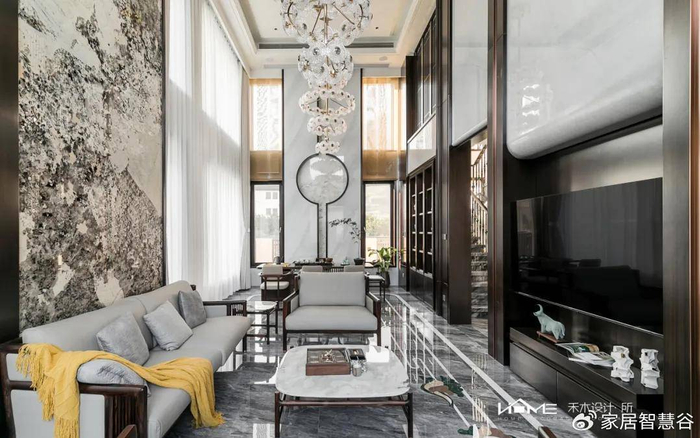 柜体并未完全阻隔视线,人影与灯光在格间隐约晃动,创造了“隔而不断”的互动趣味,完美诠释了宋代园林中“借景”与“透景”的手法在现代居室中的妙用。
