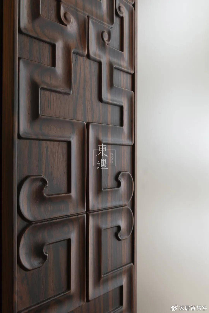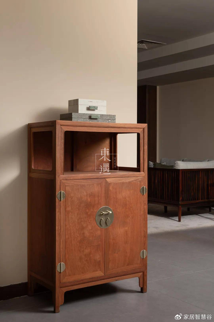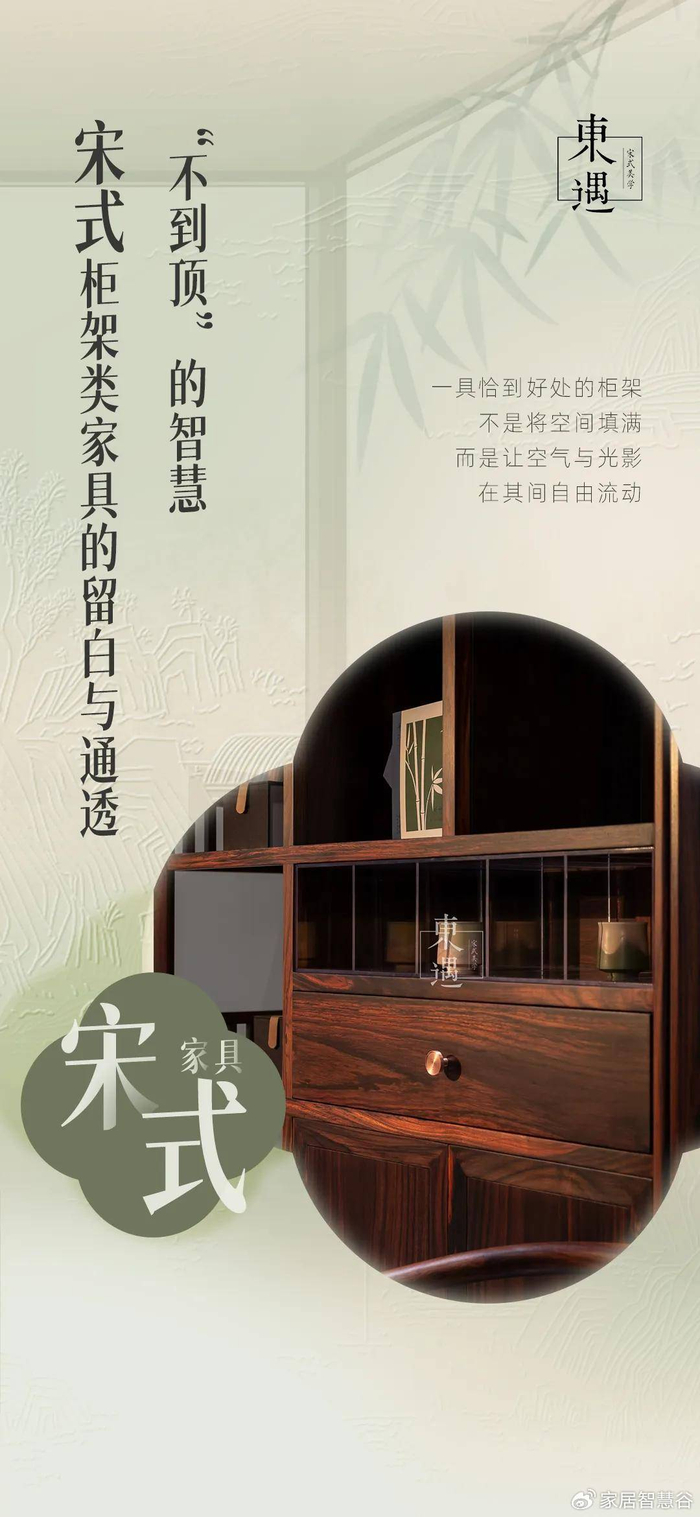 以东遇宋式美学架柜家具为例。它脱胎于宋式经典,进行了彻底的重构:
