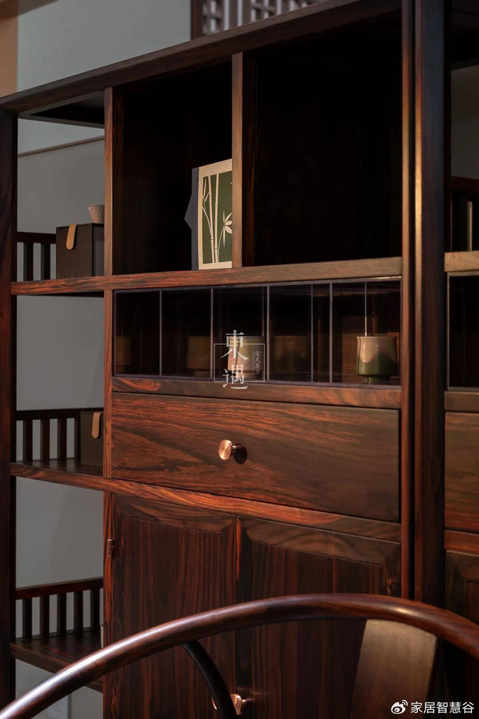 顶天立地的庞然大物,象征的是权力的威严与物质的丰盈;而适可而止、留有余地的柜架,则传递出精神的丰盈与内心的从容。
