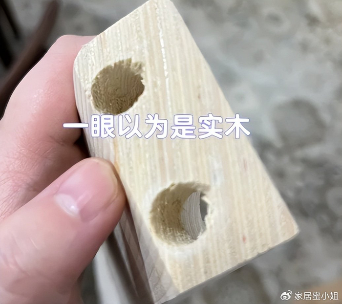 实际我想告诉各位,这种假的实木餐桌,只是表面那层皮是实木,内部都是劣质板材,