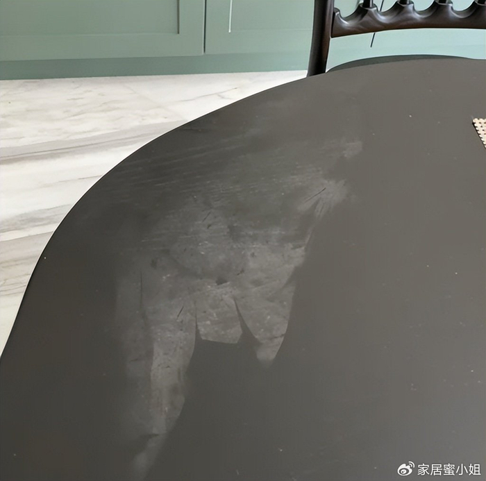 频繁接触热锅后,餐桌还会有鼓包、变色,实用性跟实木餐桌完全不一样。